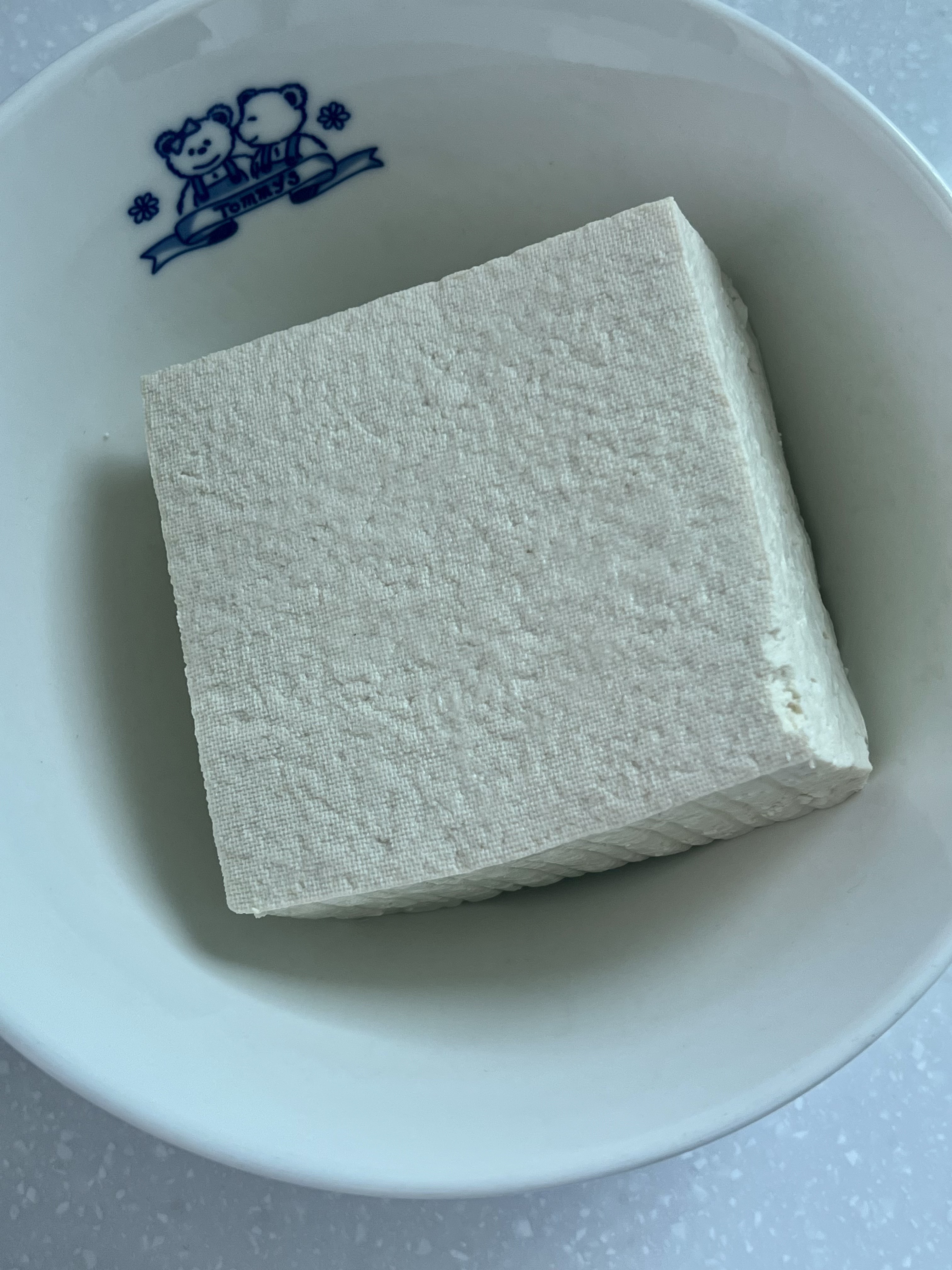 1. 키친타올로 두부의 모든 면을 꾹 눌러서 물기를 제거해준다.